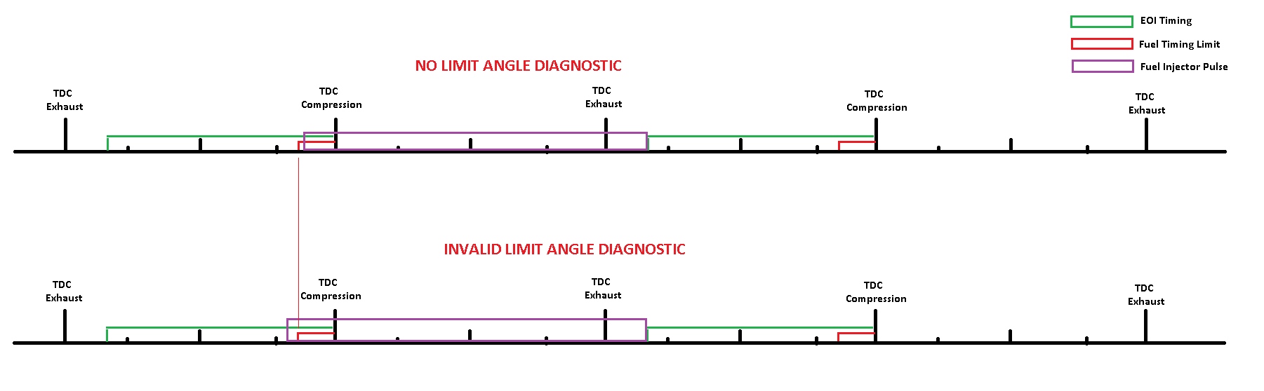 Ein ungültiger Begrenzungswinkel erscheint, wenn der Beginn der Einspritzung so berechnet wird, dass er die Kraftstoffzeitgrenze überschreitet.