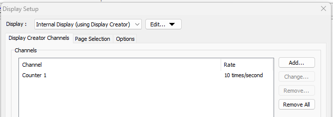 Once this has been done, add the channel into the Display Setup Channel list so that it is transmitted into Display Creator.