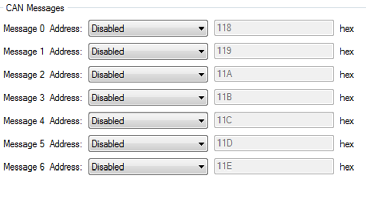 If the Message 0, 1 and 2 address configuration is different from this then the standard template will not work. If the user clicks on the Restore Defaults button the settings are reset back to these settings, but the addresses are disabled.