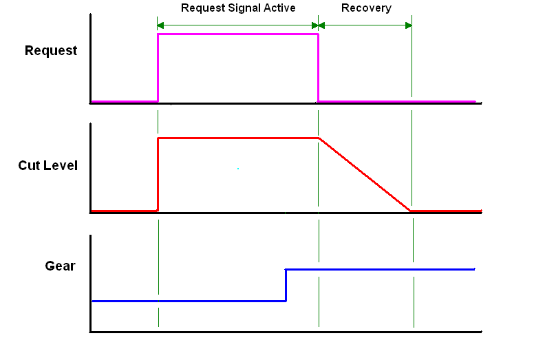 When a GCIC Delay event has finished it is possible to steadily ramp engine power back in to the drive train rather than switching full engine power back on. The Recovery Time sets the duration for a linear decrease in cut level.