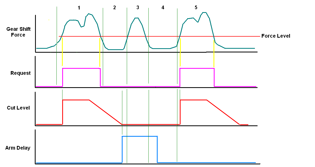 1. The driver starts the shift and once the Gear Shift Force is above the Force level a request is activated, this will lead to a successful GCIC event.