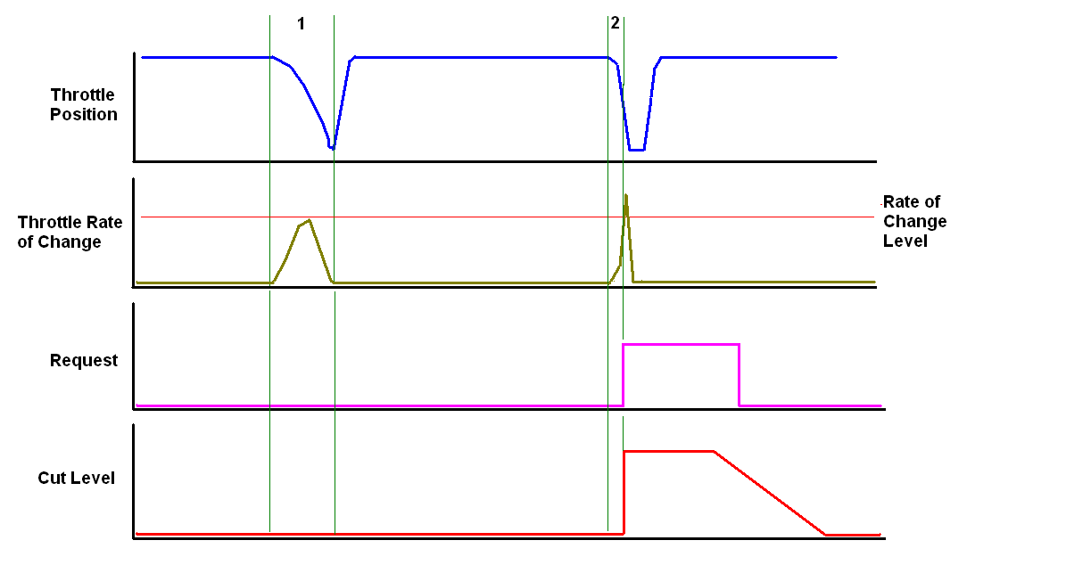 It should also be noted that the cut will also be stopped if the driver reduces the Throttle position so that it goes below the Minimum Throttle Position or if the RPM goes below the Minimum RPM.